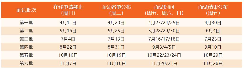 2022年入学提前批面试日程安排表